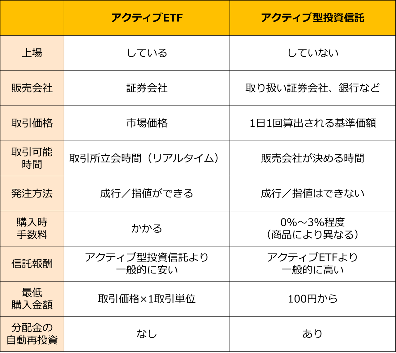 ●アクティブETFとアクティブ型投資信託の違い