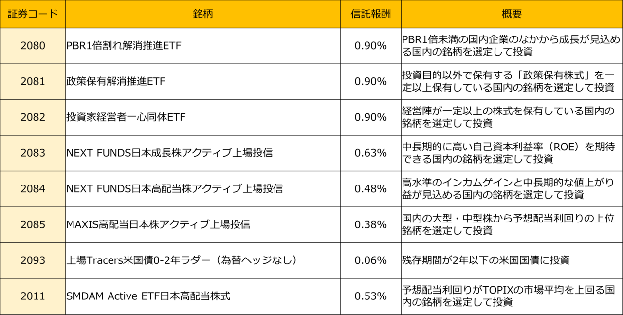 ●アクティブETFの一覧