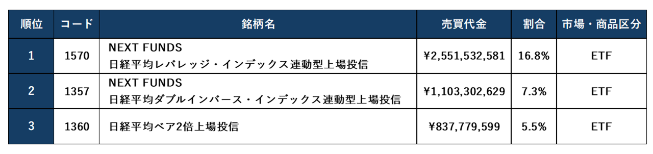 第4四半期(10月~ 12月) 第1位 11月14日(金)夜間の売買代金:316億円