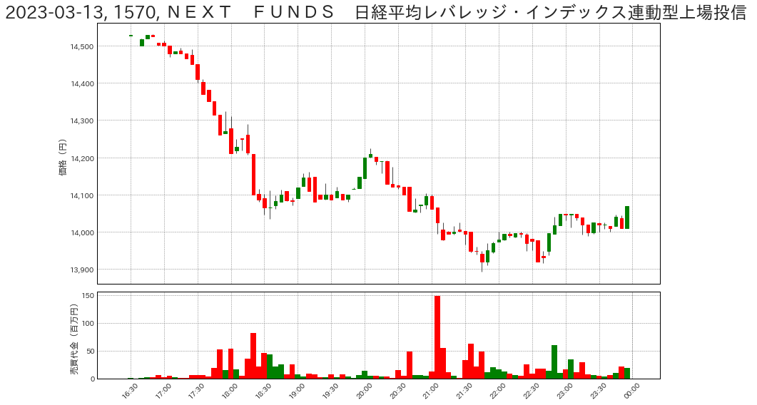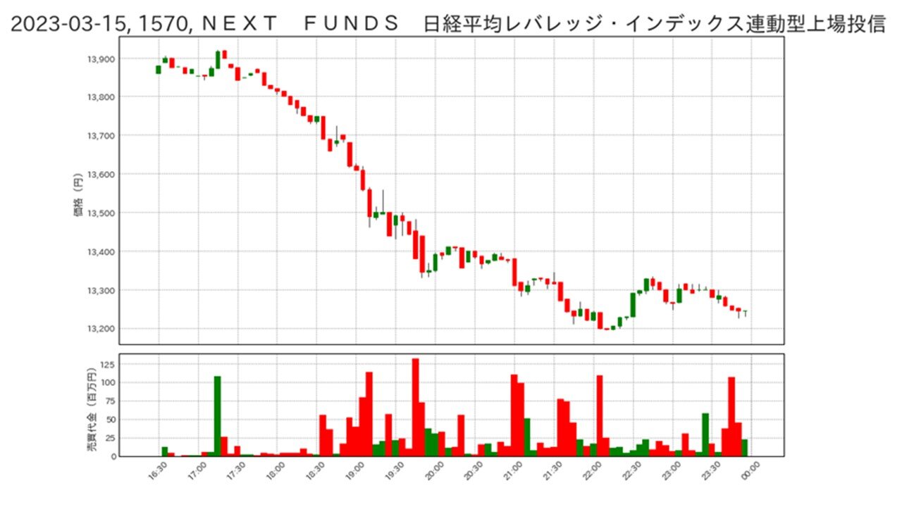 先述の通り、クレディ・スイスの株価が急落した日だったため、15日同様、日経平均レバレッジ・インデックス (1570)の売買が活発に行われました。