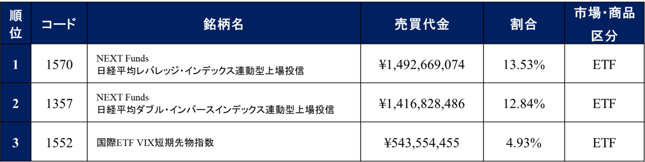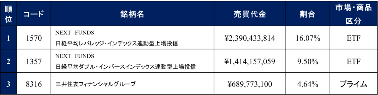 「2023年 夜間取引の売買代金トップ3×3」を発表