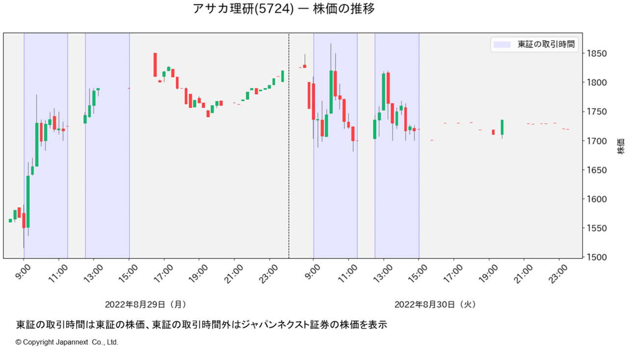 30日(火)の日中の終値は1,719円。21時過ぎに確認すると1,728円と終値よりも上昇しています。