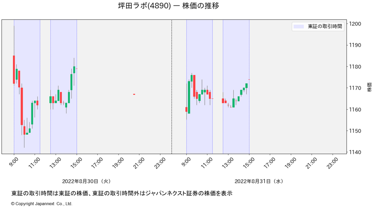 選んだのは、前々から気になっていた坪田ラボ(4890)です。今年の6月のIPO銘柄で、上場以来、比較的株価が堅調でなかなか買えるタイミングがありません。ただ、上場直後の熱狂ぶりはやや冷めてきましたので、このあたりで100株だけ買っておいて長期で握るのもおもしろいかと思いました。